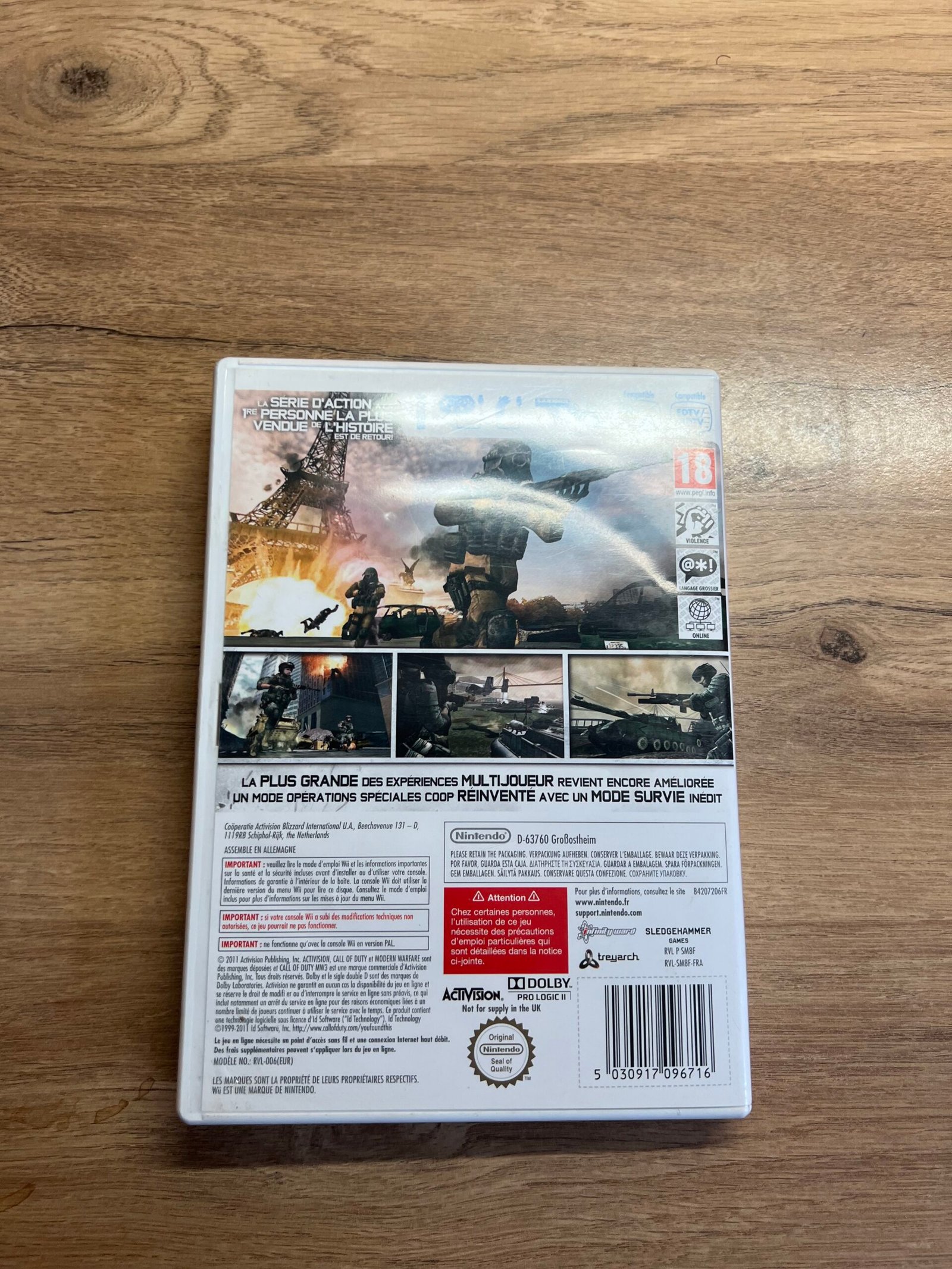 Retrouve toute l’intensité de la guerre moderne avec Call of Duty: Modern Warfare 3 sur Wii. Un jeu de tir nerveux et efficace, parfait pour les fans d’action, de FPS militaires et de rétro gaming sur Nintendo.