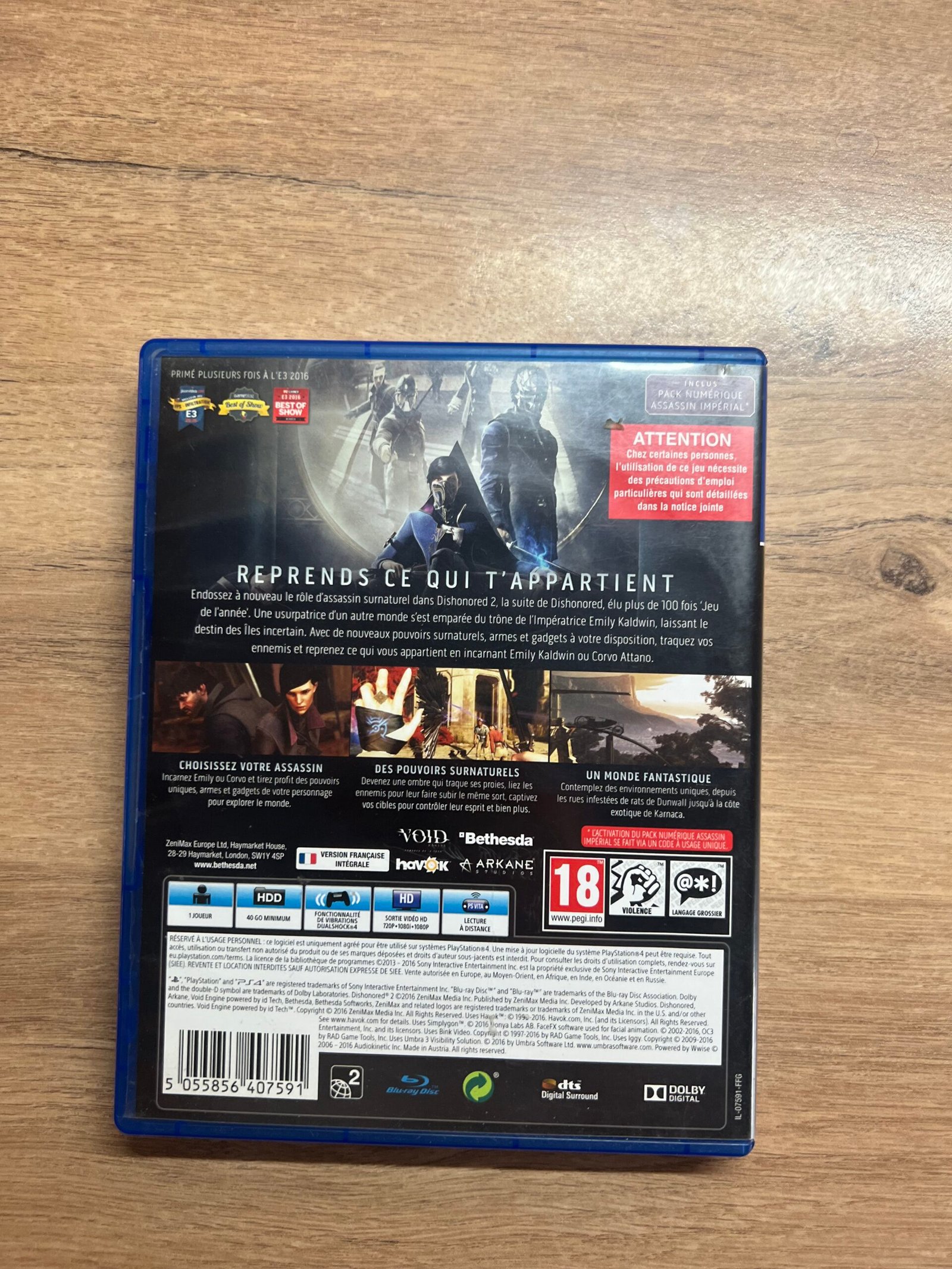 🗡️🌫️ Dishonored 2 – PS4 – Bon état – Complet – PAL