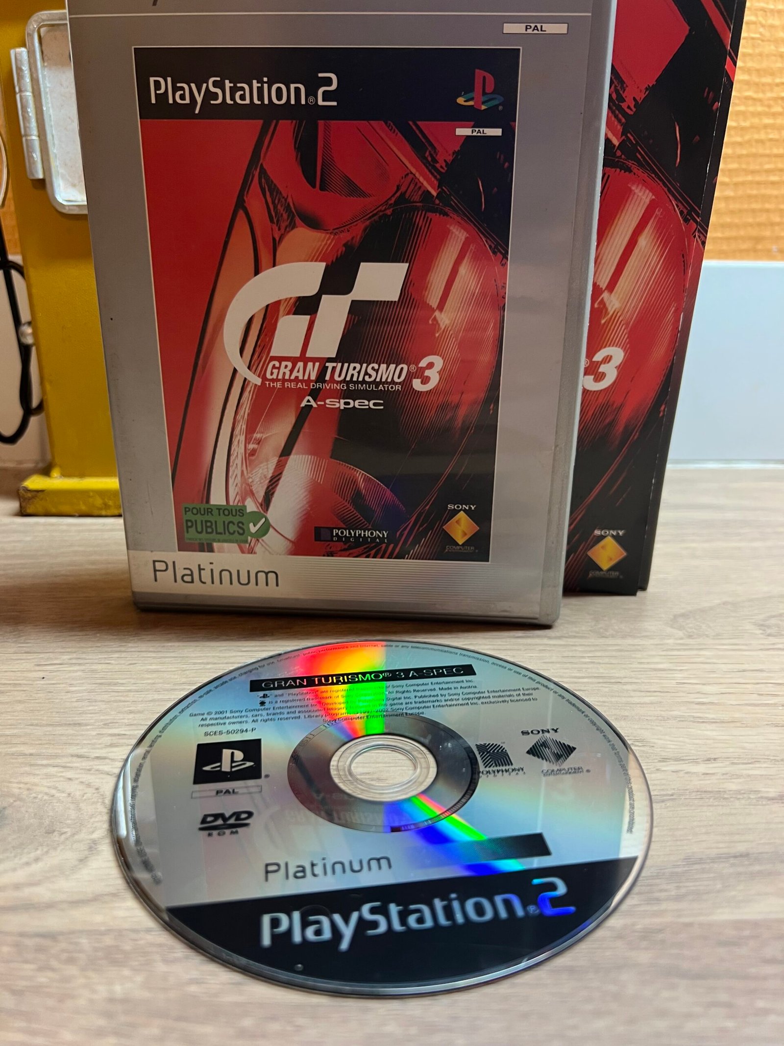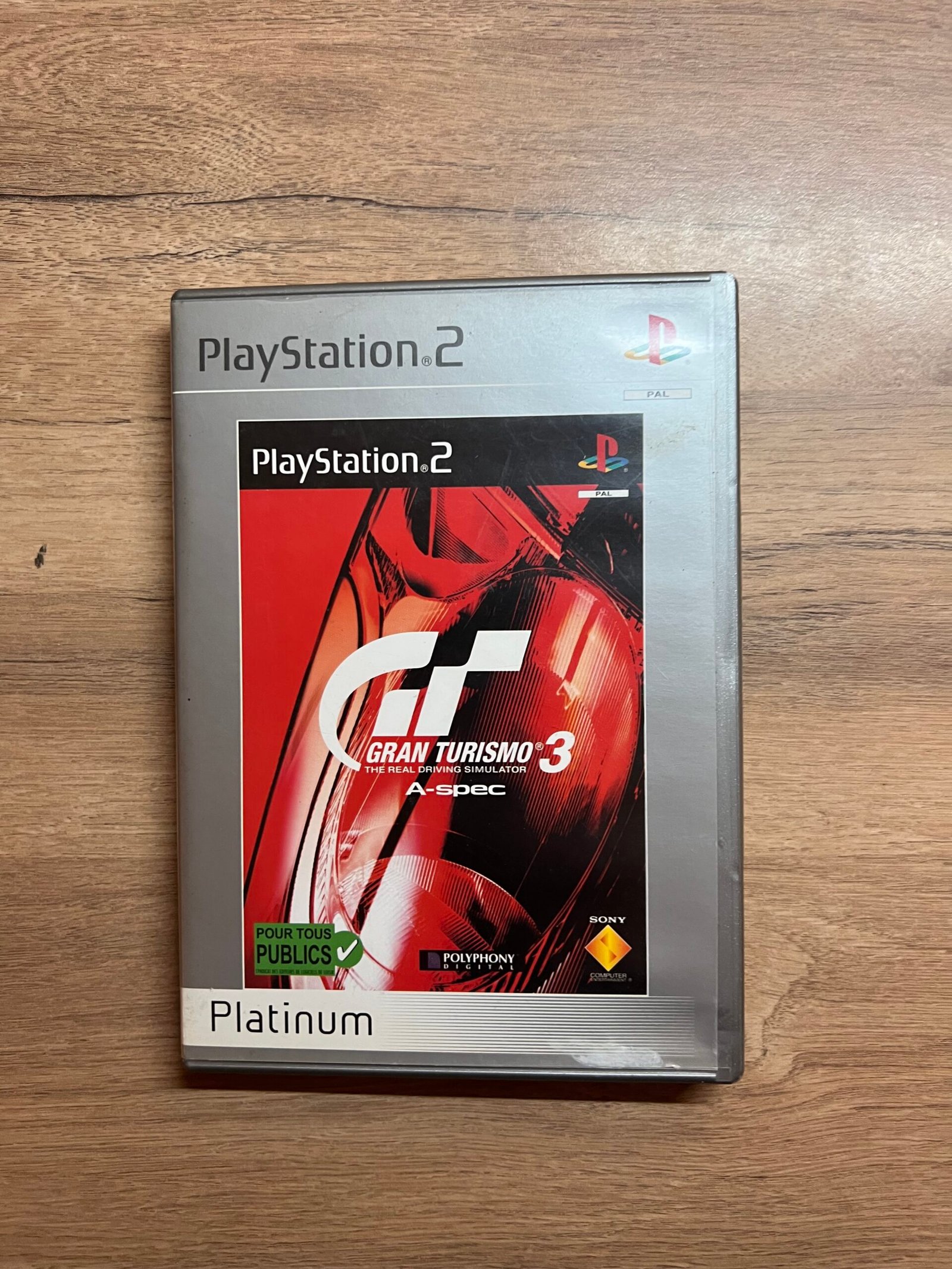 Je propose Gran Turismo 3 A-spec sur PlayStation 2, le jeu de simulation automobile emblématique avec un large choix de véhicules et des courses intenses sur des circuits réalistes.