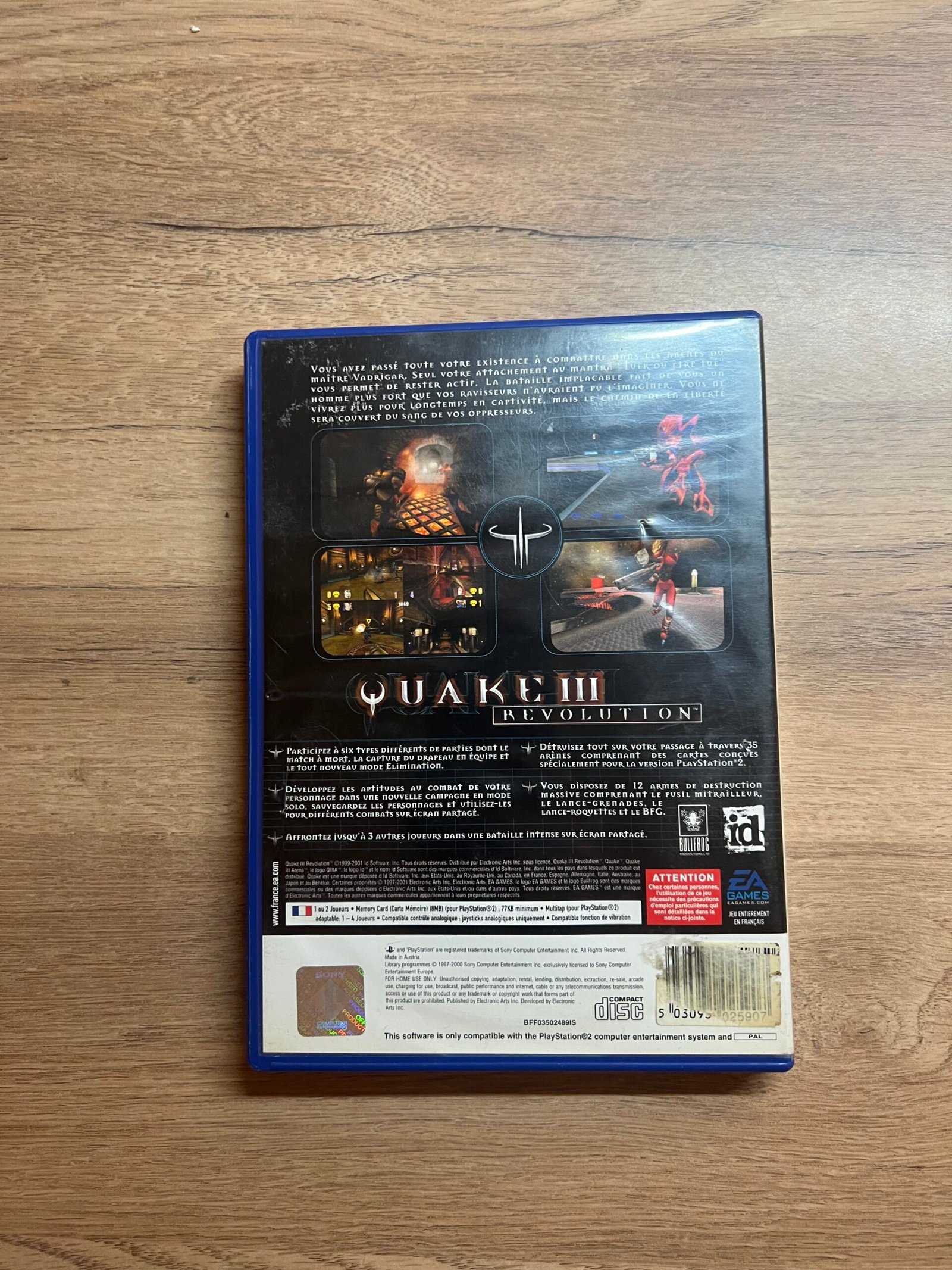 Entrez dans l’arène avec Quake III: Revolution sur PS2 ! Ce FPS culte propose des combats rapides et intenses contre des adversaires redoutables, dans des arènes futuristes pleines d’armes surpuissantes. Adapté de la légende du PC, ce jeu offre un mode campagne inédit et du multijoueur explosif.