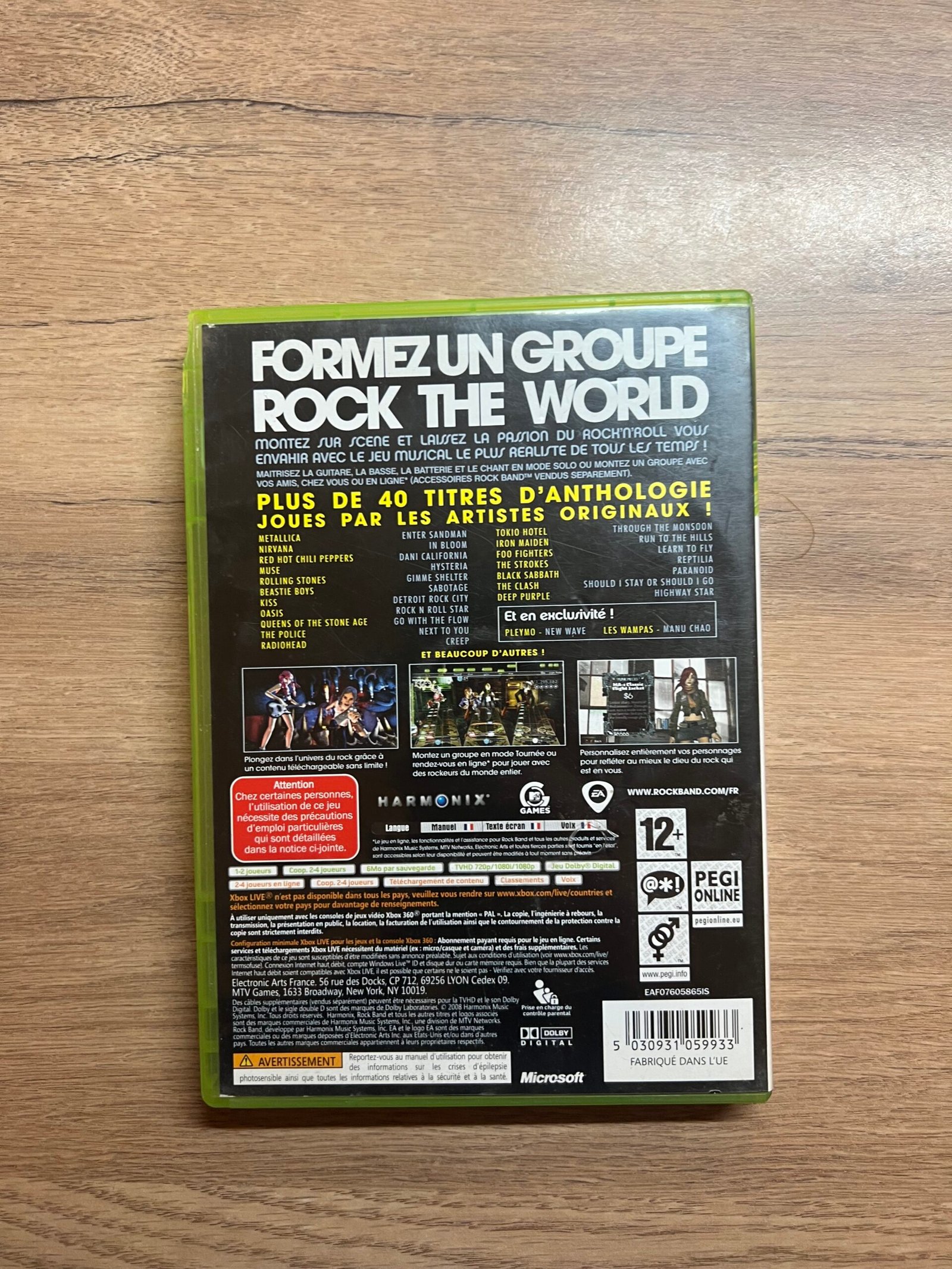 Devenez une star du rock avec Rock Band sur Xbox 360 ! Incarnez guitariste, batteur, bassiste ou chanteur et jouez en solo ou entre amis sur une sélection de morceaux cultes. Une expérience musicale immersive qui a marqué toute une génération.